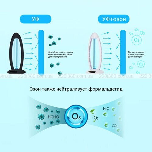 Ультрафіолетовий бактерицидний світильник UV OEM UVC-38W/OZ призначений для знезараження приміщень та поверхонь, усунення бактерій, вірусів та алергенів з повітря, позбавлення від цвілі та грибків. Він виконаний у приємному сучасному дизайні та має корпус білого кольору. Особливість даної моделі полягає у тому, що при роботі пристрій виділяє озон, що збільшує дезінфікуючу здатність світильника. Пристрій може застосовуватися у побуті, у офісах та у комерційній сфері.