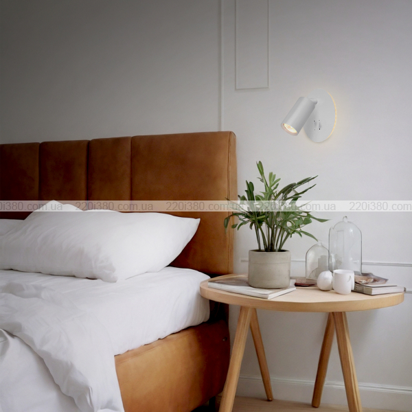 Світильник VIDEX під лампу GU10 настінний з підсвіткою та кнопкою білий (VL-SPF24E-W)