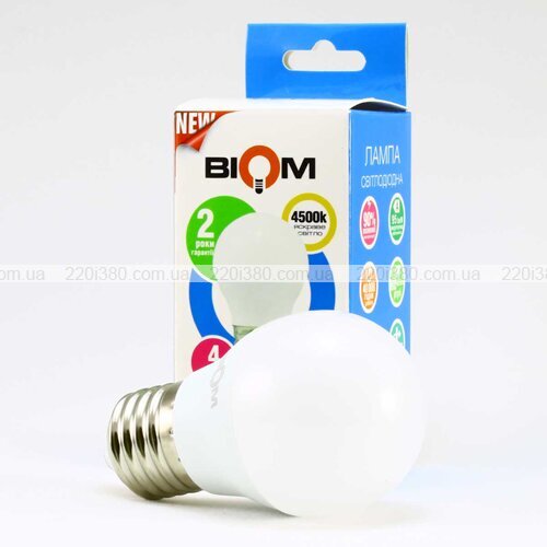 Свiтлодiодна лампа Biom BT-544 G45 4W E27 4500К матова