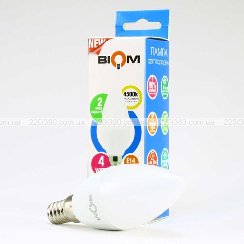 • висока світловіддача. Цей показник характеризується співвідношенням споживаної потужності і якості світлового потоку. Лед лампа з серії ВТ від BIOM з потужністю, наприклад, 4 Вт за рівнем яскравості світлового потоку буде відповідати лампі розжарювання з потужністю в 35 Вт;