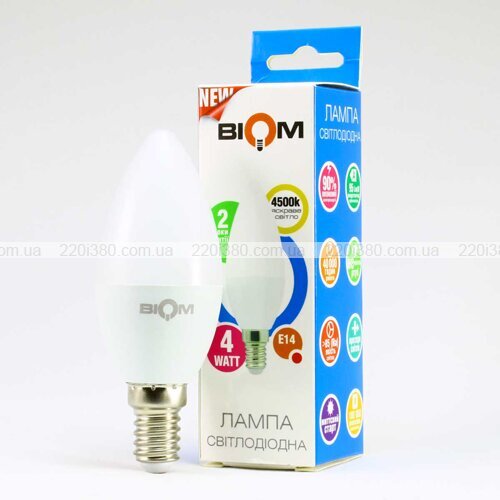 Свiтлодiодна лампа Biom BT-550 C37 4W E14 4500К матова