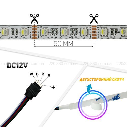 Світлодіодна стрічка BIOM Professional BPS-G3-12-5050-60-RGBW-20, негерметична, 1м