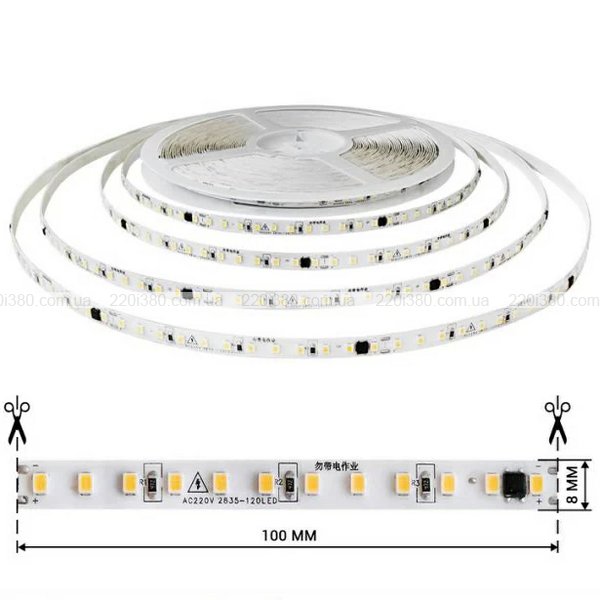Світлодіодна стрічка BIOM Professional BPS-G3-20-220-2835-120-WW-44 220В IP44 теплий білий, 1м