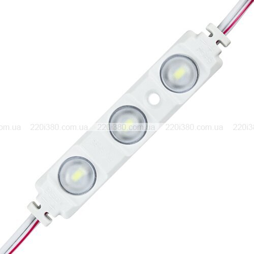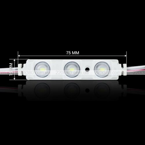 Даний світлодіодний модуль складається з трьох діодів типу SMD3030 і має потужність у 1,5 Вт при робочій напрузі у 12 В постійного струму. Колірна температура виробу – 6500 К, що відповідає холодній частині спектра з легким відтінком синяви. Світлова віддача виробу – 80 лм/Вт, світловий потік – 120 лм. За рахунок застосування спеціальної лінзи у формі півсфери кути розльоту променів у моделі доходять до 140°. Термін служби модуля оцінюється у 35 тисяч годин. Клас захисту пристрою – IP65.