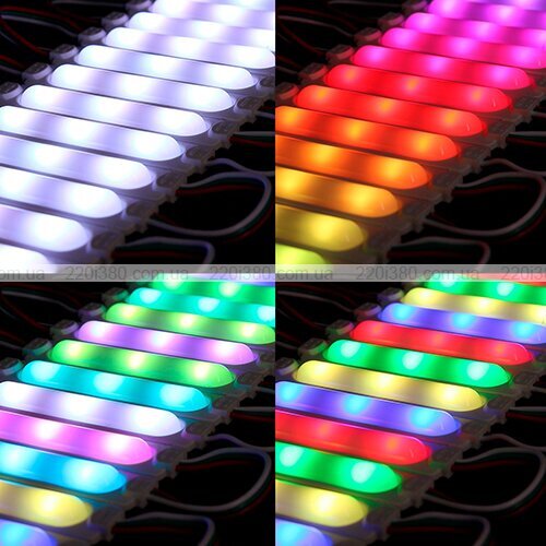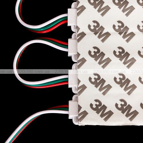Даний світлодіодний модуль належить до категорії «біжуча хвиля». Він складається з трьох квадратних діодів типу SMD5050 і має потужність у 0,9 Вт при робочій напрузі у 12 В постійного струму. За допомогою модуля можна отримувати будь-які відтінки за рахунок RGB-діодів, керованих по протоколу IC 2811. Кути розльоту променів у моделі доходять до 120°. Термін служби модуля оцінюється у 35 тисяч годин. Клас захисту пристрою – IP65.