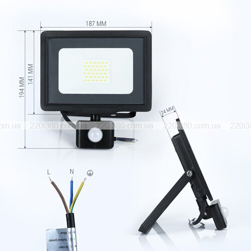Світлодіодний прожектор BIOM 30W S5-SMD-30-Slim+Sensor 6200К 220V IP65