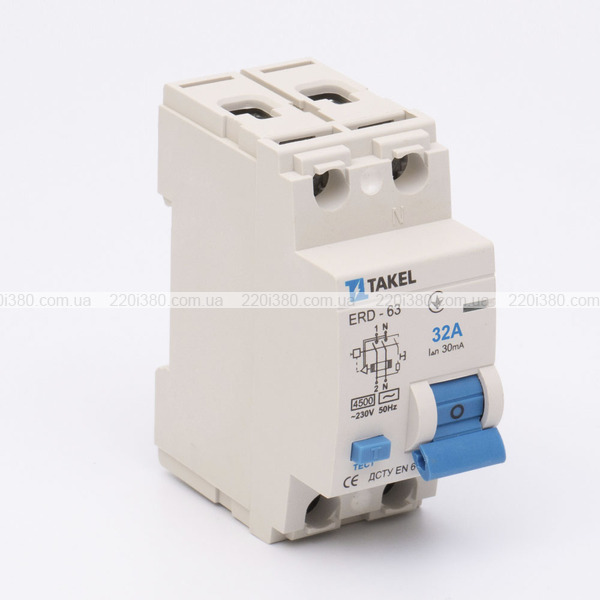 Вимикач диференційних струмів ERD-63 2P 30мА 32А TAKEL