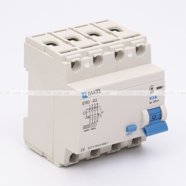 Вимикач диференційних струмів ERD-63 4P 30мА 63А TAKEL