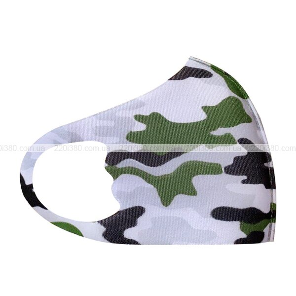Щільне прилягання до обличчя досягається за рахунок анатомічної форми маски. Забарвлення моделі – камуфляжне, розмір – дитячий.