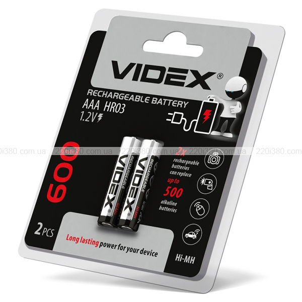 Нікель-метал-гідридні (Ni-MH) акумулятори VIDEX є високоякісним джерелом живлення і мають тривалий строк служби. Цей тип акумуляторів використовується в переносних електроприладах і інструментах. З переваг даного типу акумуляторів необхідно відзначити швидкий заряд і тривалий строк служби. Наявність на упаковці позначення "READY FOR USЕ", говорить про готовність акумулятора до роботи відразу після розпакування. У випадку відсутності такого позначення, перед початком використання акумулятор потрібно зарядити. Застосовуються для будь-яких типів навантаження.