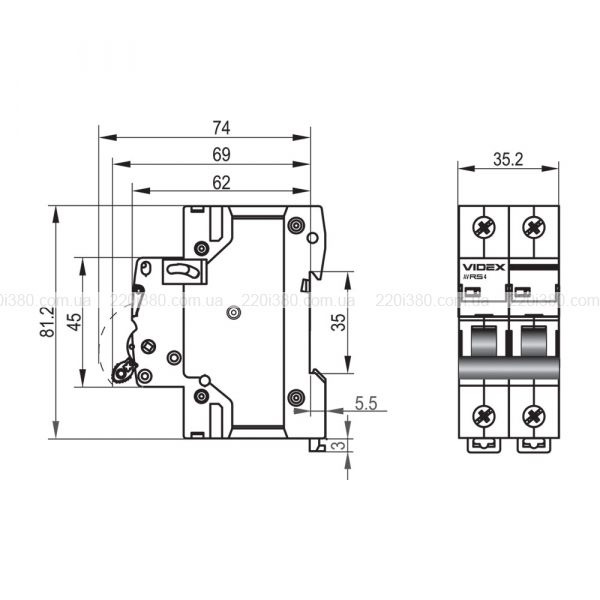 Автоматичний вимикач RS4 2п 16А С 4,5кА VIDEX RESIST