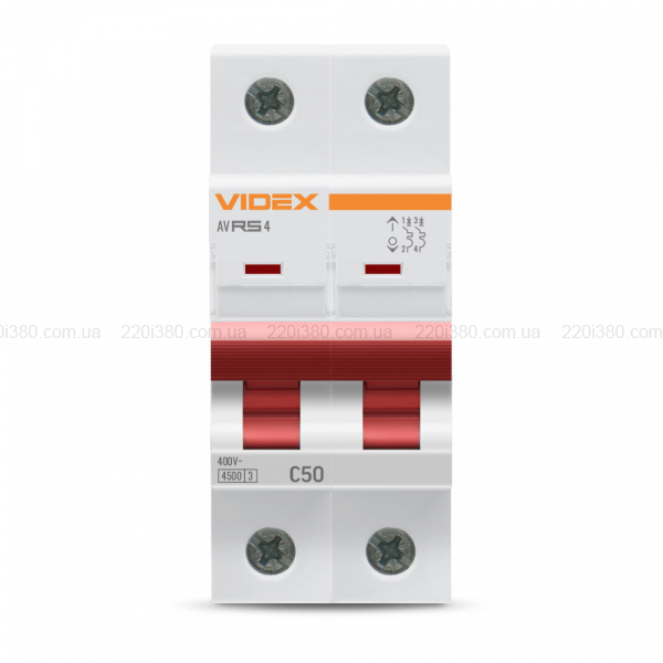 Автоматичний вимикач RS4 2п 50А С 4,5кА VIDEX RESIST