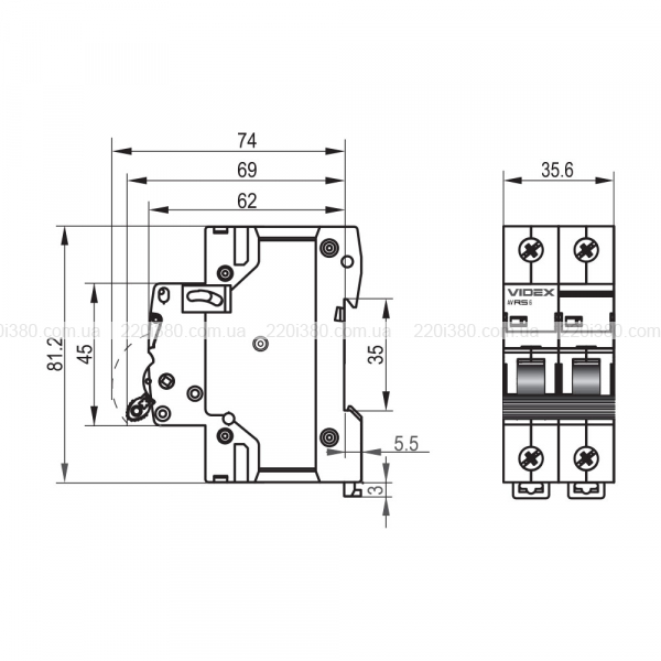 Автоматичний вимикач RS6 2п 6А 6кА С VIDEX RESIST