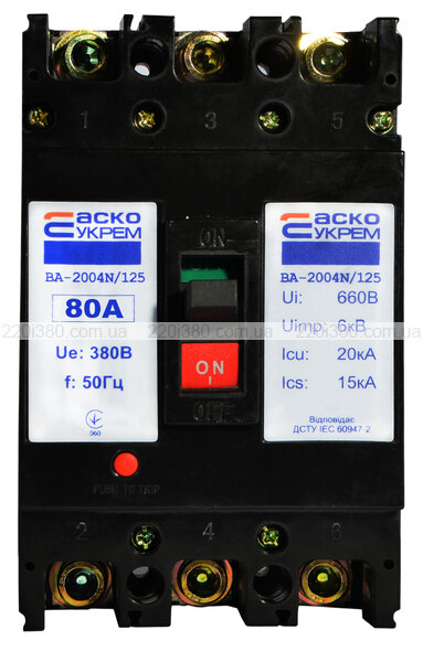 Автоматичний вимикач УКРЕМ ВА-2004N/125 3р 80А АСКО