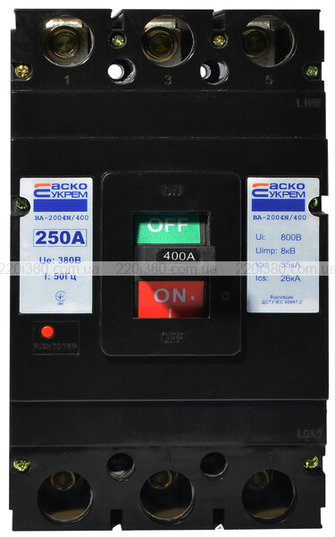 Автоматичний вимикач УКРЕМ ВА-2004N/400 3р 250А АСКО