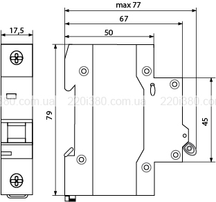 Діапазон перерізів приєднувальних проводів, мм²: 1...16 (багатожильний), 1...25 (монолітний)