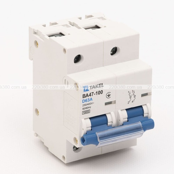 Автоматичний вимикач ВА47-100-D 2Р 63А TAKEL