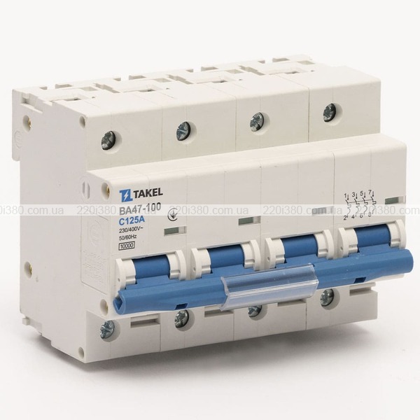 Автоматичний вимикач ВА47-100-С 10кА 4Р 125А TAKEL