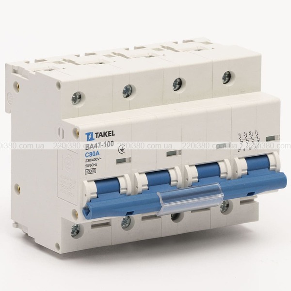 Автоматичний вимикач ВА47-100-С 10кА 4Р 80А TAKEL