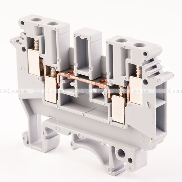 Серія клем: FJDK.Призначення: для надійного і зручного з'єднання провідників різних перерізів з можливістю підключення чотирьох провідників через одну контактну пластину (один полюс) клеми, встановленої на DIN-рейку.Тип фіксації проводів: гвинтовий.Установлення: на монтажну рейку з профілями: 35*7,5мм.Робочі температури: від -40 до +80 °С.Температура монтажу: від 0°С і вище.Сертифікація в Україні: добровільна сертифікація згідно вимог ДСТУ EN 60947-1.Клема на DIN-рейку на чотири контакту має з кожного боку по два отвори для проводів, що дозволяє підключати до одного полюса по два провідники з кожного боку.Корпус клеми виготовлений з нейлону 66, що робить його пластичним і міцним одночасно.Клеми багатовивідні гвинтові мають спеціальні місця для установлення маркувальних бирок (ZB), які поставляються окремо від клем.Клеми прохідні на дин-рейку серії FJ мають можливість підключення планок з'єднувальних (перекладок) двох типів:перекладки з'єднувальні з гвинтами серій FBI, які вгвинчуються в контактні пластини клем (з верхнім уведенням в клеми);мости з'єднувальні з частковою ізоляцією серії EB, які вводяться в ряд клем через отвори для проводів.