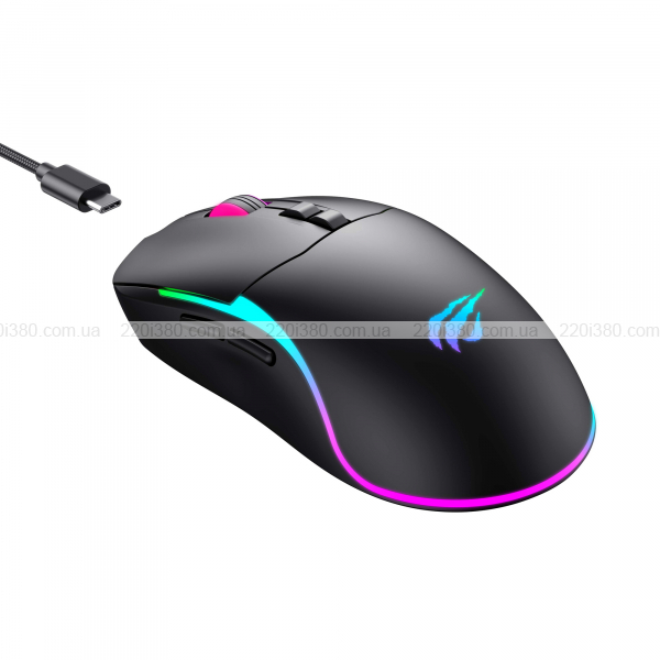 Бездротова миша трьохрежимна ігрова HAVIT MS1020WB може підключатися трьома різними способами. Підтримує 2.4GHz, дротовий, два бездротових режими Bluetooth. Може працювати як в дротовому, так і бездротовому режимі. Її роздільну здатність можна регулювати в залежності від ваших потреб 1200-2400-3600-6400-8000-10000 DPI. Чим вище значення DPI, тим швидше рухається курсор при мінімальному русі миші. Має ергономічний дизайн, завдяки чому рука при роботі за комп’ютером не втомлюватиметься довгий час. Особливою перевагою миші є можливість підключення одразу до двох пристроїв, можливість дротового режиму, наявність вбудованого акумулятора, можливість програмування кнопок і наявність RGB підсвітки із 9-ма режимами. На її корпусі присутні 8 кнопок, в тому числі є і ті, якими можна перемикатися на попередню або наступну сторінку, налаштовувати DPI, а також перемикатись між режимами 2.4GHz та Bluetooth. Кнопки мають великий ресурс натискань – до 5 млн. Миша сумісна з системами Windows, Linux і Mac OS. Працює від вбудованого акумулятора ємністю 600mAh і заряджається через USB-C. Разом із мишею в комплект входить USB адаптер, який використовується для підключення до комп’ютера. На задній панелі передбачений спеціальний відсік, куди можна його вставити, щоб запобігти втраті при транспортуванні. Гарантійний термін виробу – 1 рік.
