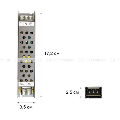 Підключення блоку живлення відбувається за допомогою 3 проводів на 220V (фаза, нуль, заземлення), а підключення споживача - за допомогою 2 проводів на 12V ( +/ -) для подачі напруги, наприклад на світлодіодну стрічку.