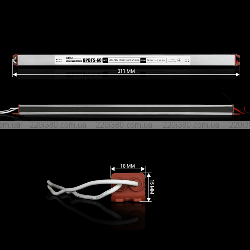 Модель відрізняється вузьким формфактором (311×18×15 мм), завдяки чому легко монтується в обмеженому просторі — у профілях, корпусах світильників або вузьких монтажних каналах.