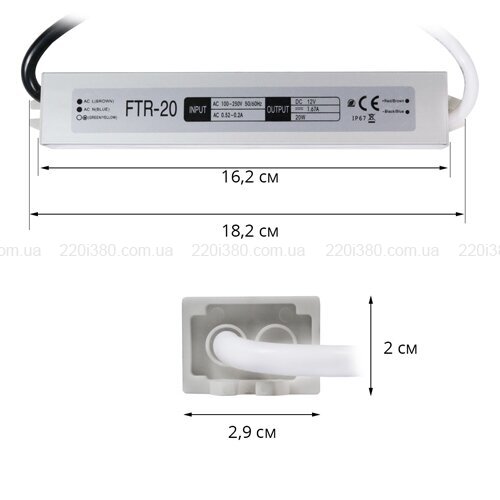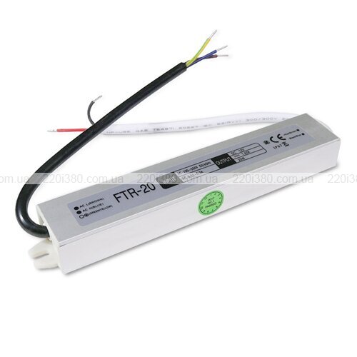 Блок живлення OEM DC12 20W 1,67А FTR-20 призначений для трансформації стандартної напруги 220 В змінного струму у 12 В постійного, необхідних для живлення світлодіодних стрічок. Дана модель має вихідний струм величиною 1,67 А та діапазон напруг живлення від 170 до 240 В.