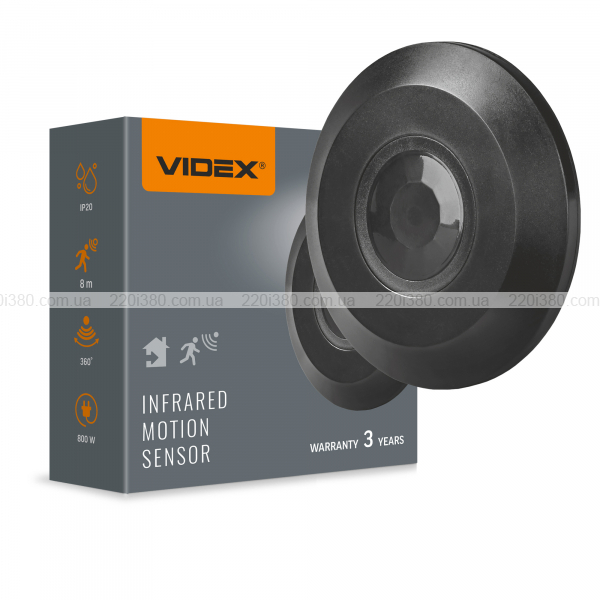 Датчик руху та освітленості VIDEX VL-SPC05B 220V 800W інфрачервоний чорний