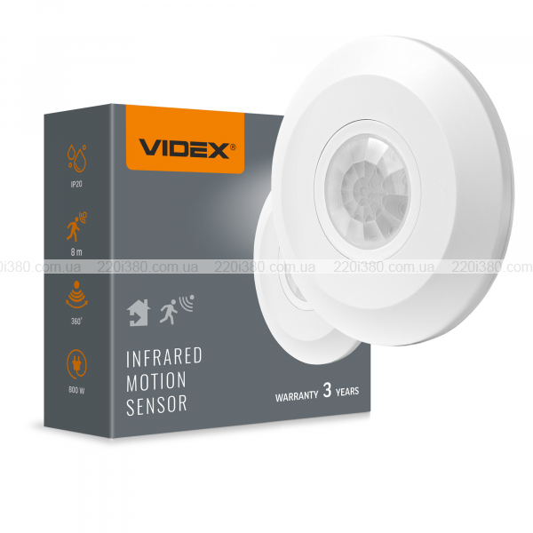 Датчик руху та освітленості VIDEX VL-SPC05W 220V 800W інфрачервоний білий