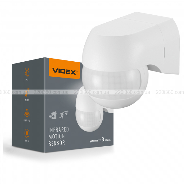 Датчик руху та освітленості VIDEX VL-SPW11W 220V 800W IP44 інфрачервоний білий