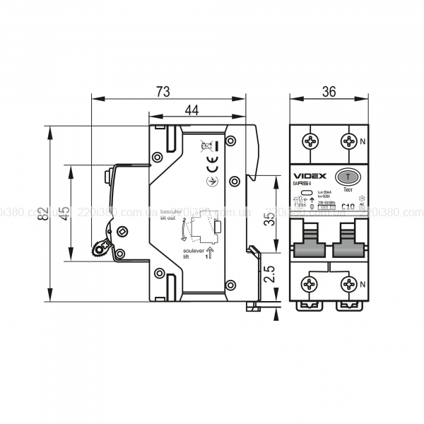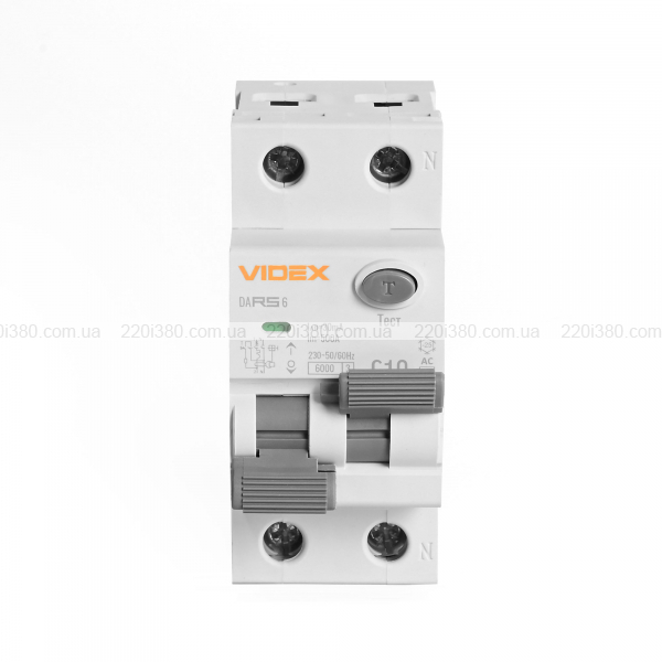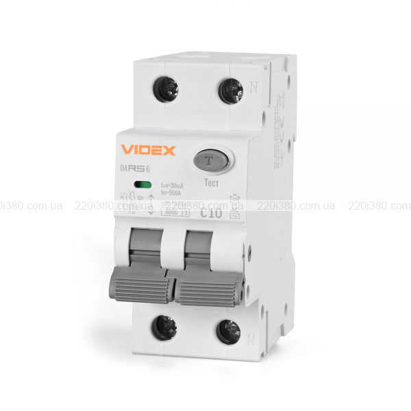 Диференційний автомат VIDEX RESIST АС 2п 30мА 6кА 10А