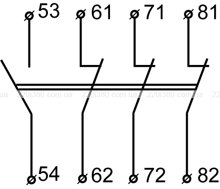 | Кількість і тип контактів: | 1NO+3NC |