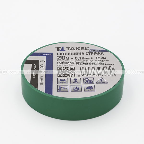 Ізоляційна стрічка 0.18мм х 19мм х 20м Argent, зелений TAKEL