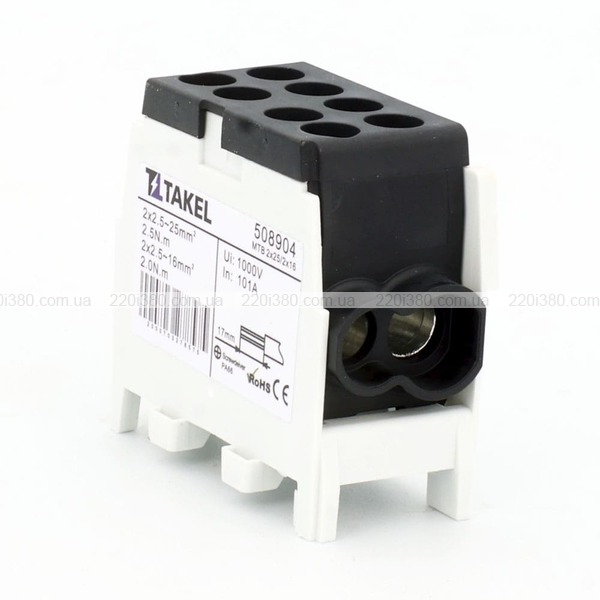 Клема розподільча MTB 2х25/2х16 з подвійною фіксацією, чорний TAKEL