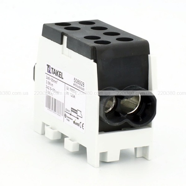 Клема розподільча MTB 2х35/2х25 з подвійною фіксацією, чорний TAKEL