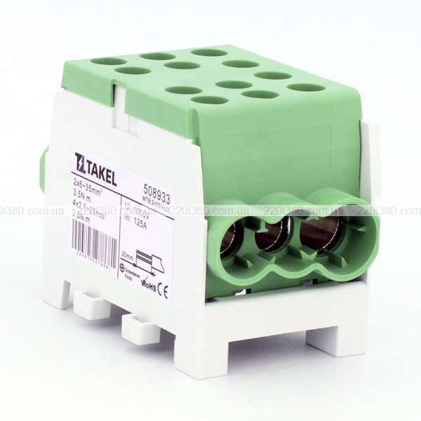 Клема розподільча MTB 2х35/4х25 з подвійною фіксацією, зелений TAKEL
