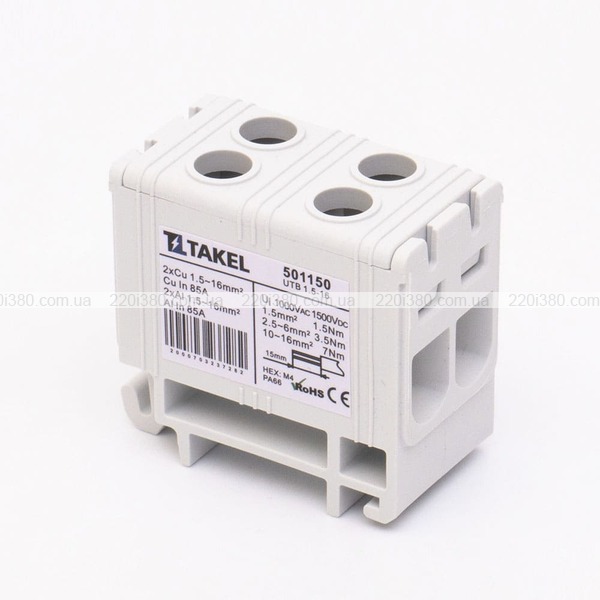Найменування скорочене: Клема силова ввідна подвійна UTB 1.5-16
