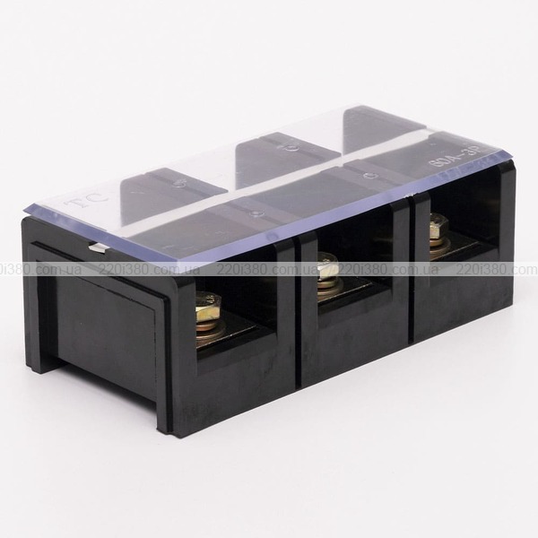 Матеріал: Клемна шина: сталь; Гвинти: анодована сталь; Корпус: карболіт; Кришка: ПВХ