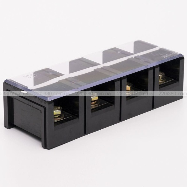 | Матеріал: | Клемна шина: сталь; Гвинти: анодована сталь; Корпус: карболіт; Кришка: ПВХ |