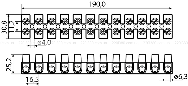 Діапазон перерізів приєднувальних проводів, мм²: 1...16 (багатожильний), 1...25 (монолітний)