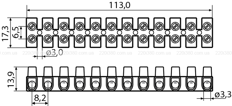 | Діапазон перерізів приєднувальних проводів, мм²: | 1.5...6 |
