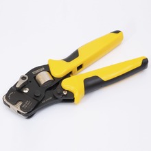 Універсальний інструмент для всіх типів трубчастих наконечників (під один і два проводи). Інструмент з торчовим чотиригранним механізмом і збільшеним діапазоном обтиску (до 16мм?). Зручний регулятор зусилля тиску (обертається пальцями без попереднього викручування), пластикові руків'я з проґумованими поверхнями.
