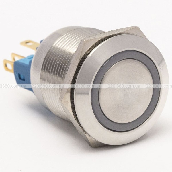 Кнопка металева КНМ-22-FJ-E-Z 220V 1NO1NC плоска з фіксацією, блакитний TAKEL