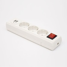 Колодка подовжувача з кнопкою 3 гнізда із з/к та 2 USB LEE