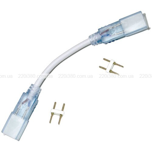 Цей провідний конектор типу «роз'єм-роз'єм» використовується для з'єднання світлодіодних стрічок. Виріб виготовлений з пластика та оснащений парою голчастих роз'ємів 2pin. Робоча напруга моделі – 220 В. Конектор сумісний зі стрічками на основі діодів типу SMD5050 і SMD3014.
