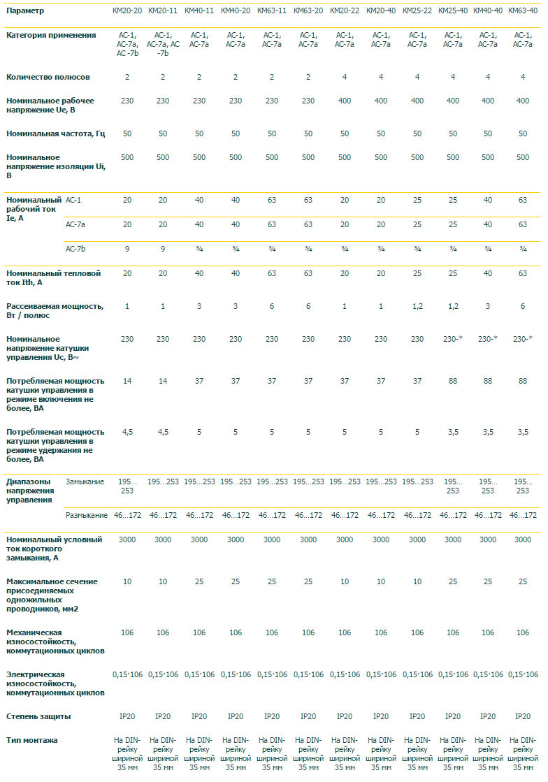 • Універсальне живлення котушки управління – змінний чи постійний струм (КМ25-40, КМ40-40, КМ63-40)