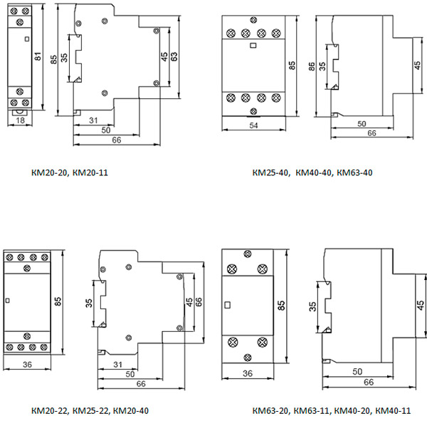 Контактори модульні типу КМ торгової марки IEK призначені для застосування в мережах змінного струму напругою до 400 В частоти 50 Гц і служать для комутації слабоіндуктивних навантажень з номінальним струмом до 63 А.