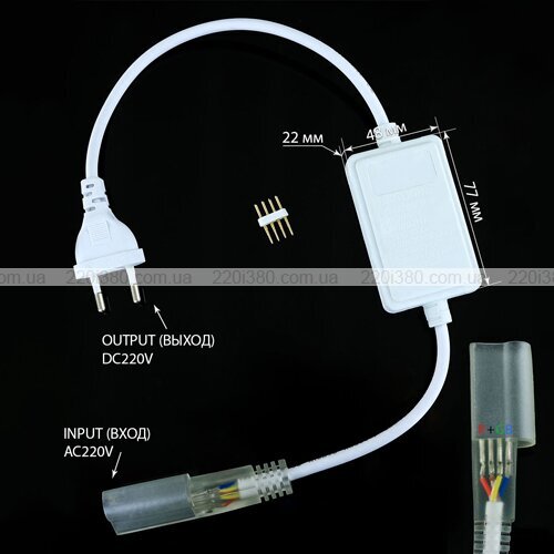 Дана модель виконана у вигляді корпусу з мікроконтролером, від якого відходять два кабелі. Перший з них є живильним шнуром, необхідним для підключення пристрою до мережі, а другий – роз'ємом для приєднання контактів стрічки.