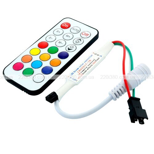 Комплект поставки контролера включає до себе пульт дистанційного керування. Він працює за допомогою трансляції інфрачервоного сигналу та представляє собою виріб з 24 кнопками. Розміри пульта – 86х40х7 мм.